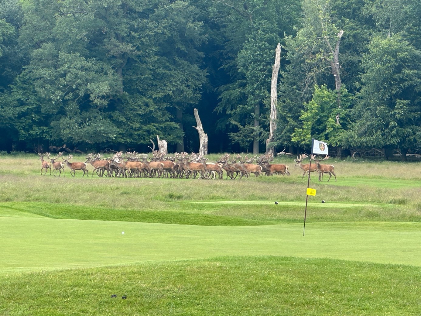 Am nächsten Tag stand ein Besuch des Royal Kopenhagen Golfklubs an. Eingebettet in ein 1.000 ha großes Areal beinhaltet dieses ehemalige königliche Jagdrevier eine einzigartige 18 Loch Golfanlage. Ca. 2.400 Stück Rot- und Damwild laufen frei über das gesamte Areal und bieten eine einmalige Kulisse. In nächster Nähe grast das Wild relativ unbeeindruckt von den Golfspielern und dem Geschehen. Der Course Manager, Martin Nillson, ist verantwortlich für 26 ha. gemähten Rasen. Sämtliche nicht gemähten Flächen dürfen weder gepflegt noch behandelt werden.